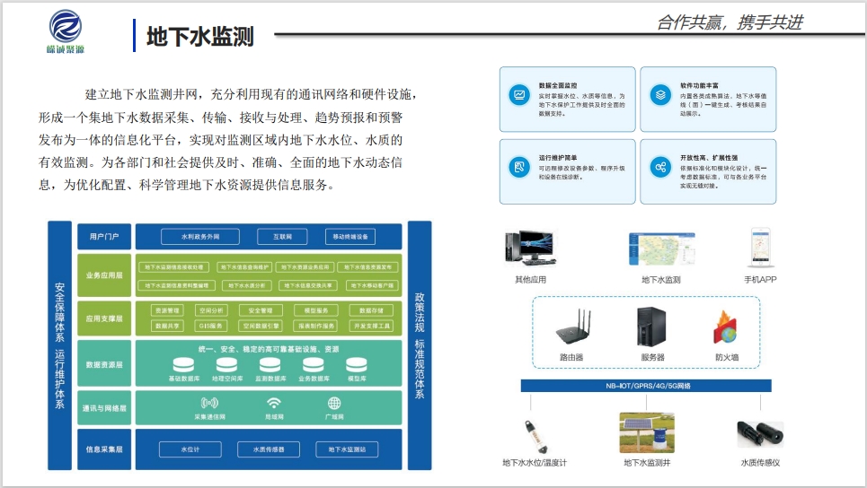 四川嶸誠聚源智慧科技有限公司是集研發、設計、生產、銷售、運維為一體的水質監測全產業鏈企業;產品綜合光學、微電子、軟件、通訊、機電工程等多領域技術,同時擁有在線過程儀表,在線監測儀表、在線實時治理等核心技術的高端創新型企業。 公司擁有專業的運維、售后服務團隊,7*24小時服務,為客戶提供從咨詢方案設計、施工、運維、售后服務“全周到”的360°全方位的服務。以 “全場景”、“全業務”、“全智能”為宗旨,建設以監管為核心的AI智能監測感知網絡,覆蓋江、河、湖、溝、渠和水利設施的可視化、可控化的監管場景,加載智能